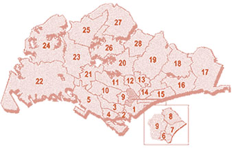 East : Changi, Pasir Ris, Simei, Tampines |